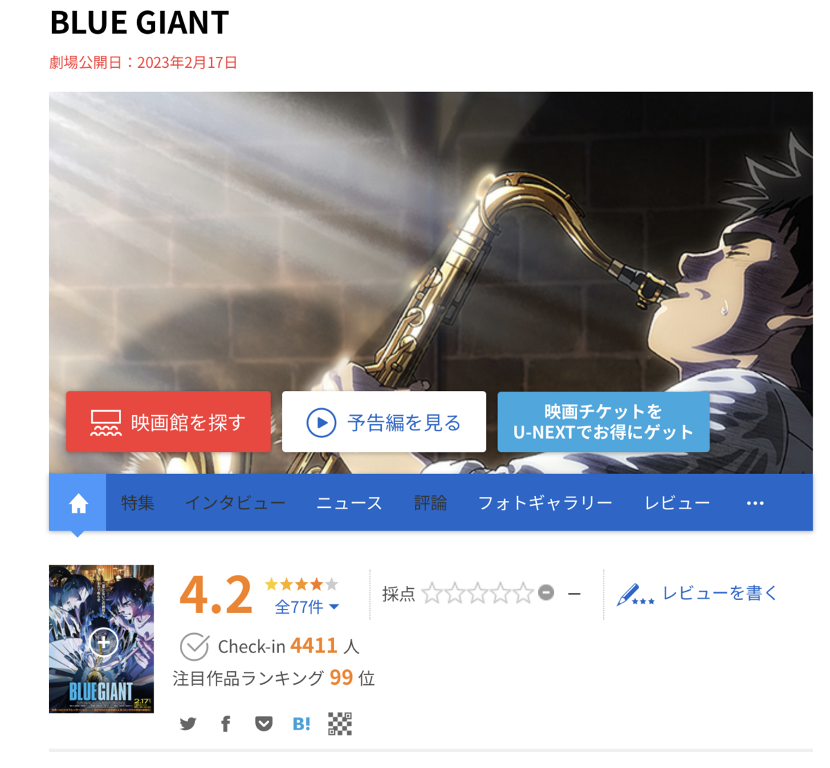今回は絶賛相次ぐ『BLUE GIANT(ブルージャイアント)』の映画の感想記事になります!